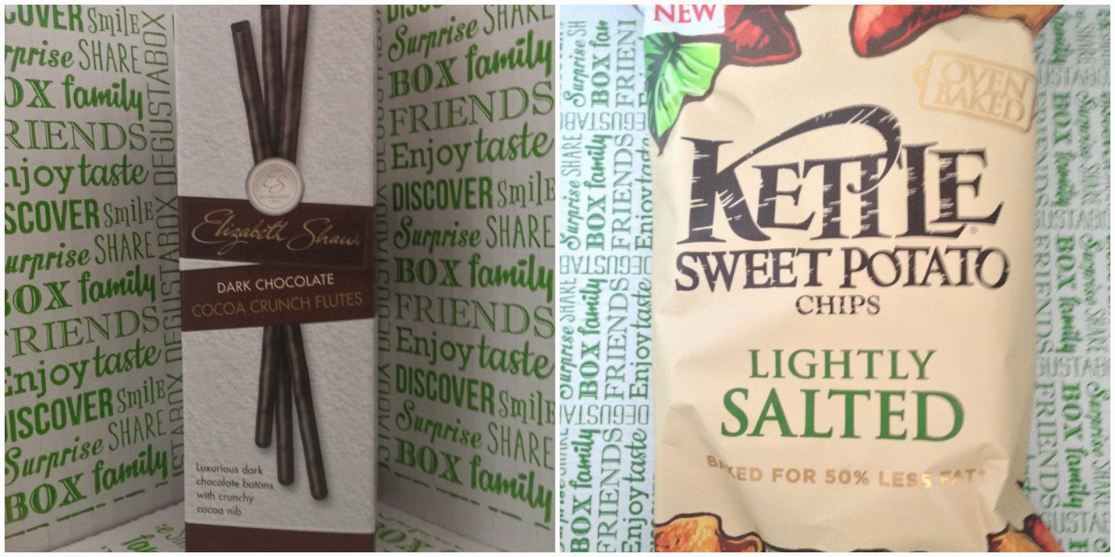 Elizabeth Shaw dark cocoa crunch flutes, yummy these were gorgeous. Kettle sweet potato chips - I love Kettle crisps and I love sweet potato, so I was super excited to try these out and they did not disappoint; a different type of snack, and very yummy.