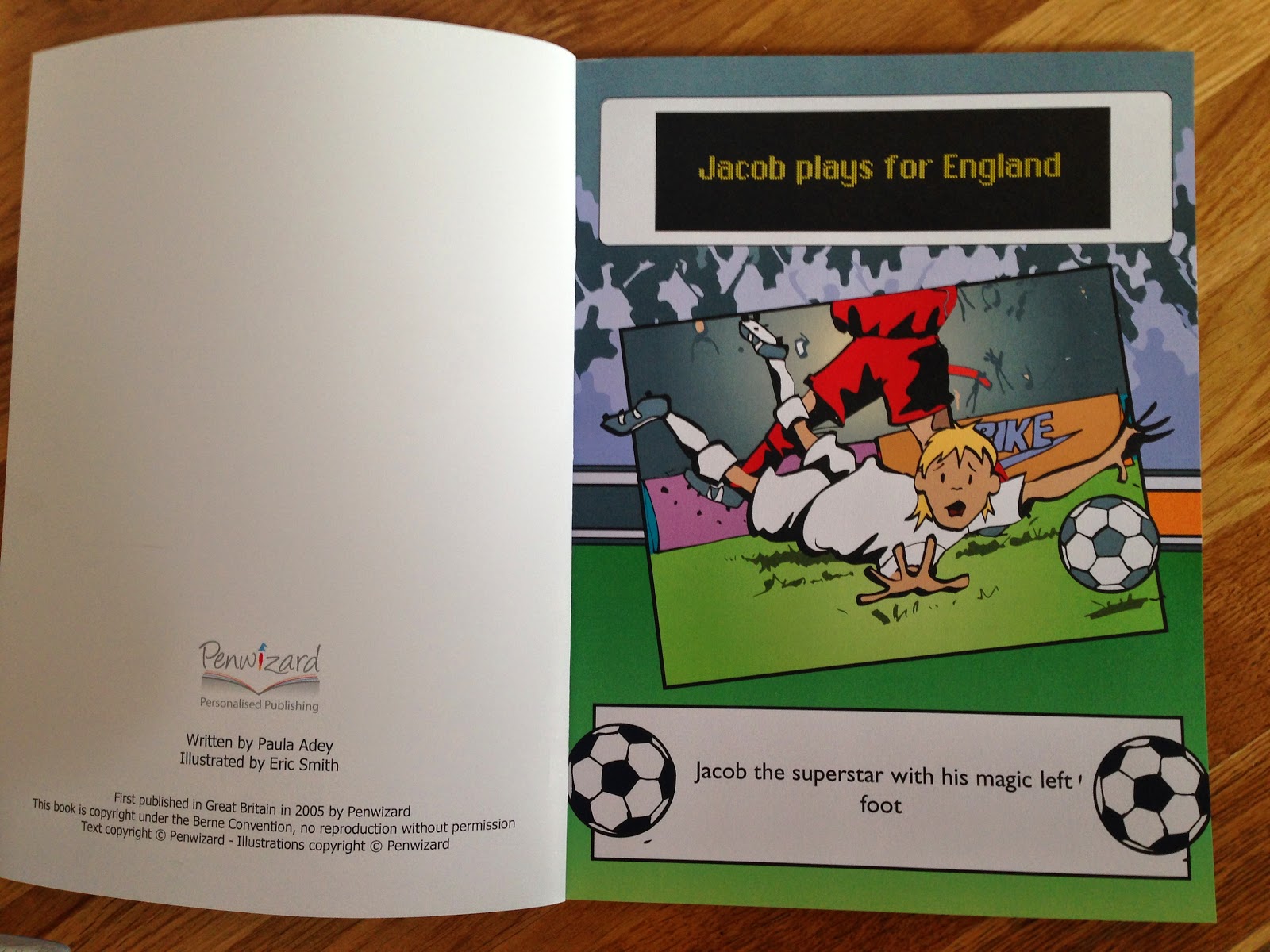 Jacob plays for EnglandThis is our second review for Penwizard's personalised children's books, and this time we got to review the Football story book.