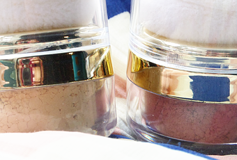is packed in a small jar with a built-in foam applicator and a mirror on its