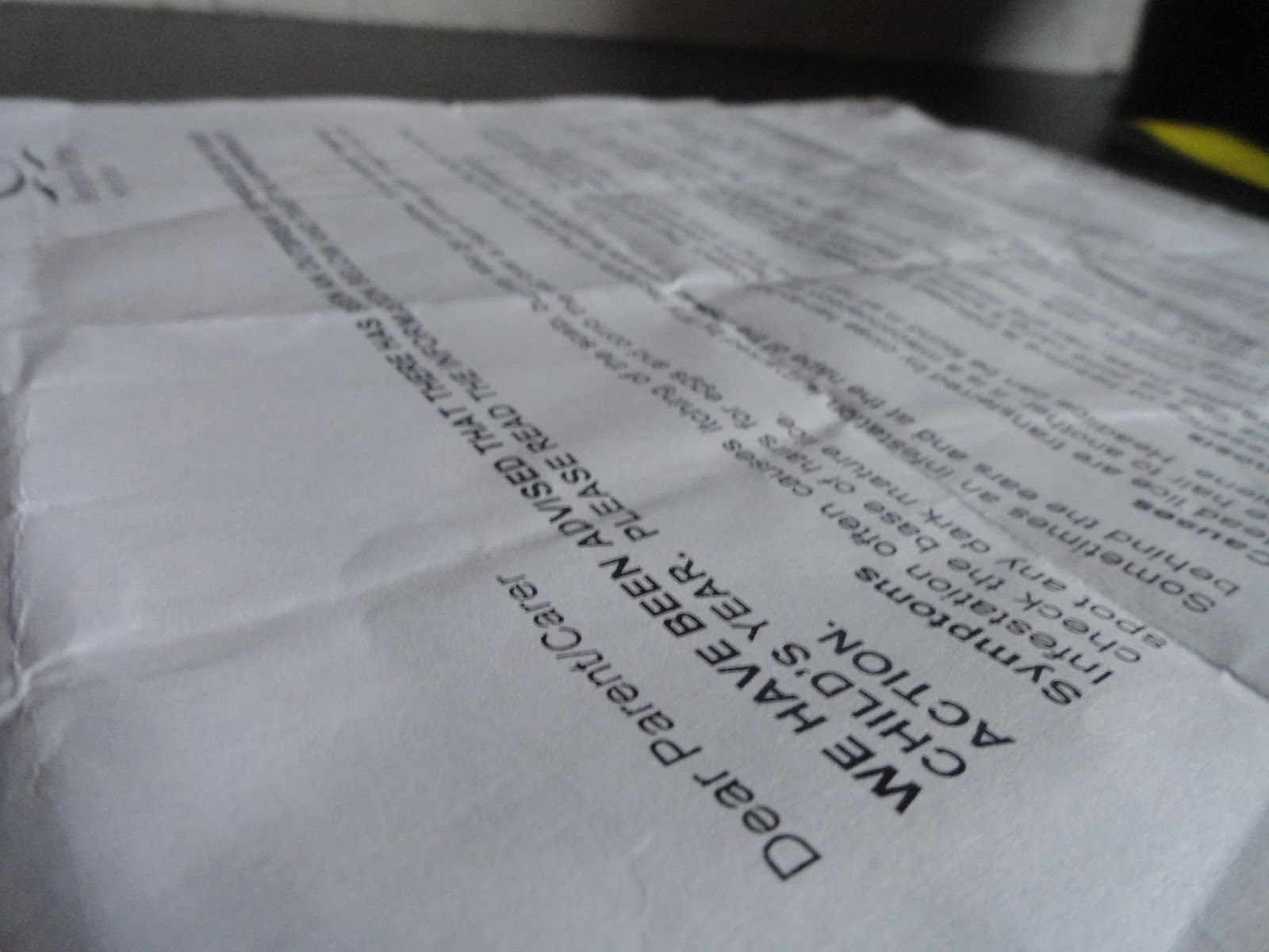 We also received text messages from the school alerting us each and every time head lice were spotted and in what key stage group. Which is really proactive of the school to do this, and they are clearly trying to keep on top of it, and I appreciate there efforts.