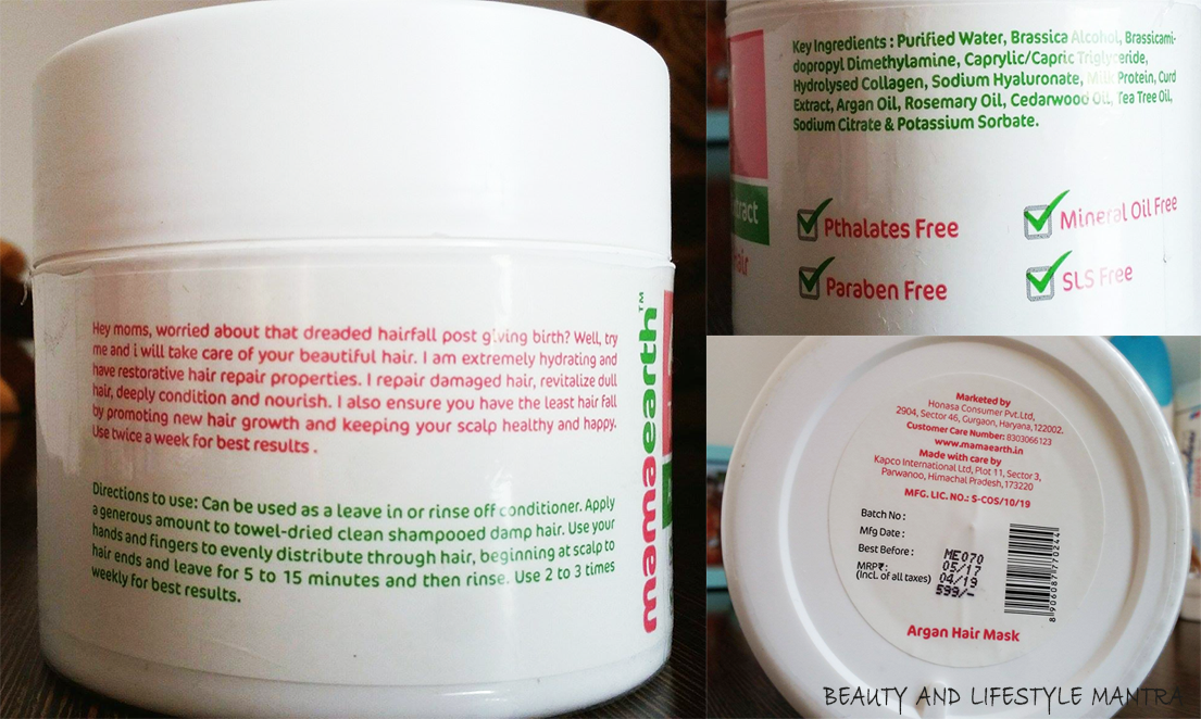 I don't have the luxury of time to do daily hair treatment but I always promise myself to do more often. This time I decided to try this Argan Hair Mask because argan oil is one of the best ingredients that you can find out there to revive unhealthy hair like mine. The product claims so many good things that actually I needed. So let's get details about the Argan Hair Mask from Mama Earth.Detail Product Information:Name: Mama Earth Argan Hair Mask to Reduce Hair FallPrice:₹ 599Quantity: 200 mlShelf life: 24 months from the date of manufacturing