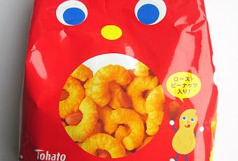 These cute red bags of Caramel Corn have long been high on my list of Japanese products to try. I love the bright packaging but have always been curious about a cheese puff looking snack with a sweet sounding name like Caramel Corn. It turns out that these are indeed a sweet version of a corn snack, something I've never come across before, but with an unexpected added peanut twist (although the little peanut character on the packaging should have been enough of a clue!).