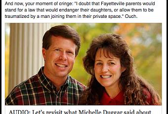 Valuable commentary from Out in Arkansas (on its Facebook page), linking to Joanna Rothkopf's Salon article revisiting Michelle Duggar's remarks attacking LGBT citizens of Fayetteville, Arkansas, last year — as potential child molesters . . . .