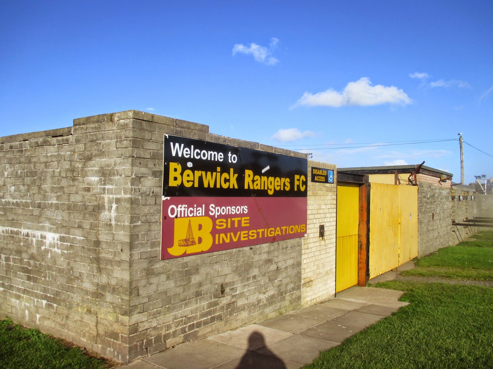 The occasion for my return to Shielfield after 14 years was for another of our days on the lash, this time for the pending 47th birthday of best pal Zippy. Apart from a map with a list of pubs, I also took my camera to click together a web album of the home of Berwick Rangers.The Borderers entered the Scottish League in 1951, some 70 years after their formation in 1881. Shielfield Park dates back to 1890, named after land owned and local butcher William Shiel Dods. The club moved from an adjacent ground pitch to the present site in 1954, purchasing steelwork from Bradford City to build the main stand. Aston Villa were their first opponents and over its 60 year history the record attendance stands at 13,365, for the famous 1-0 Scottish Cup victory over Glasgow Rangers in January 1967.