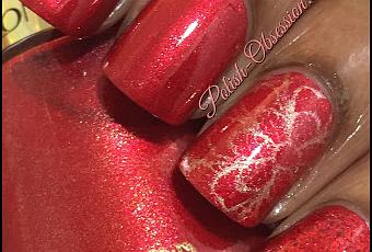 Saucy is a gorgeous red with a hint of gold shimmer and it has a great formula!! It's fully opaque in one easy coat. On my pinky, I added red Nails Inc. glitter called Covent Garden Market. On my ring finger, I stamped an image in gold from the Pueen Celebration Collection Lace Blossom plate.