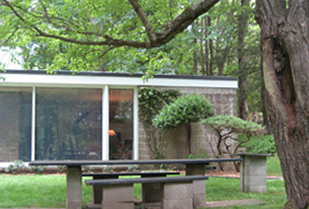 Founded in 1731, New Canaan became the magnificent summer playground of the Manhattan upper class in the mid-19th century. Eventually many of the summer visitors stayed, creating the suburban community that exists today. Historic colonial homes with picturesque gardens sit side by side with enormous new “McMansions.” The residents are still predominantly wealthy (in fact, New Canaan has been rated as one of the most affluent towns in America), and generally conservative. It certainly wouldn’t be obvious to the outsider that this conventional New England town is home to one of the most significant collections of mid-century modern houses in the United States.