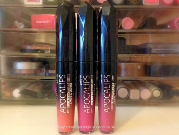The amazingly well named 'Apocalips' are a fairly new range of (as Rimmel put's it) earth-shattering lip lacquers. They are a happy medium between a long lasting intensely pigmented lipstick & a lipgloss. With one swipe of the applicator you are left with a thick high shine color on the lip, & I don't mean thick as in heavy & gloopy (technical word) I mean thick as in rich, soft & creamy.