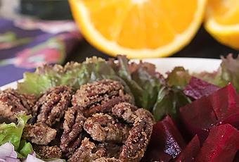 So get back on task Barb...how does all this lead up to a Roasted Beet Salad with Oranges, Pecans & Feta Cheese? Please, we're just dying to know. 🙂