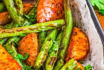 - Roasted Sweet Potatoes And Green Beans: Swap out the baby potatoes for sweet potatoes, just cut them into small enough pieces that they can cook all the way through and get crispy on the outside.