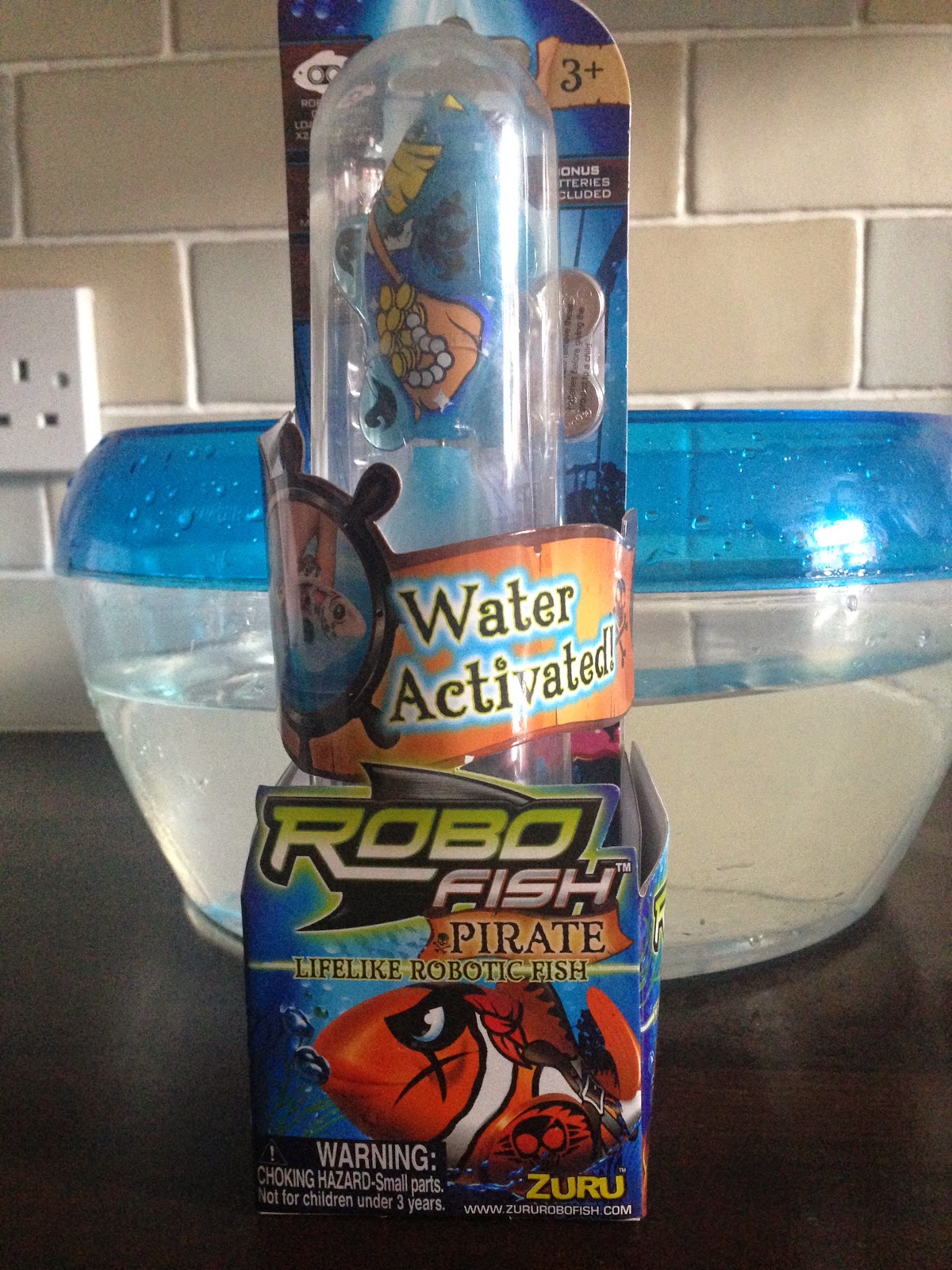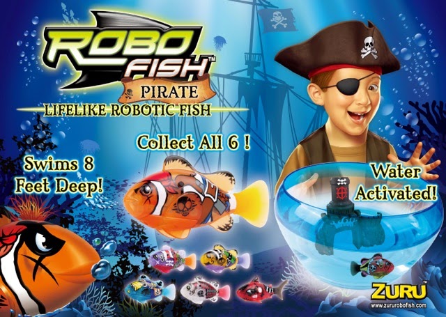 What are ROBOFish?You simply drop it into water and it instantly comes to-life, swimming around mimicking that of a real fish. They work so well due to the latest carbon sensors technology in which it is made with, as soon as ROBOFish enters water it automatically activates it, and as soon as you remove it from the water, it stops. In addition this year, ZURU have come back with better improved technology with the 'power save', a clever feature, which will automatically switch off your ROBOFish after 4 minutes to save power, but it will reawaken once dried and placed back in the water.Not forgetting that it not only mimics the life-like movements of a real fish, as it can swim in 5 directional movements: Up, down, left, right and forwards, it is also 100% waterproof with a soft silicon tail. This is one clever little toy, that offers hours of fun.Conclusion: Jacob love these, he has a few from the original range, along with the tank, although when playing with them, he doesn't only use them in the fish tank, he sticks them in the bath, sink and swimming pool. They are tons of fun and are a great gift for any child. ROBOFish pirate costs £9.99) and there are 6 to collect! You can also get the playset costing £19.99, which comes complete with a ROBOFish, accessory and fish tank.