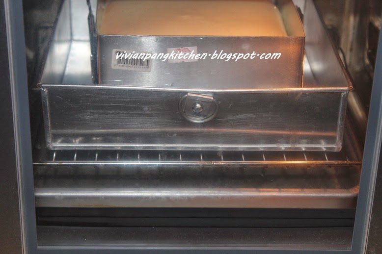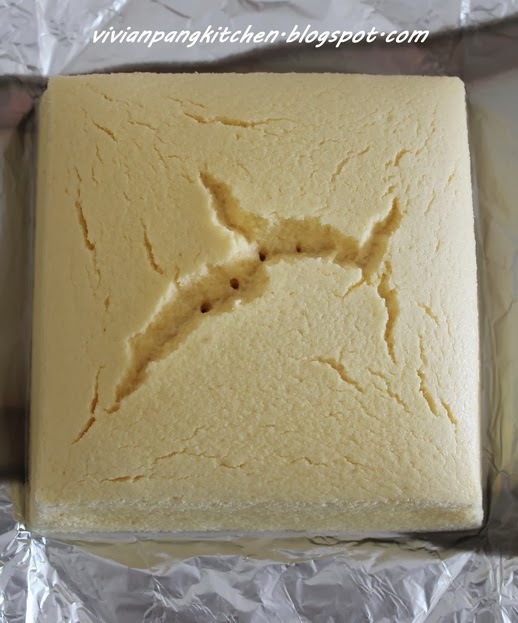 I’m happy with the cake texture but not the cake surface coz it crack! Without much hesitating I bake again. This time I make sure my whites are beaten till soft peak (refer to Nasi Lemak Lover post here) and bake at lower oven temperature. During half way of baking time I stand in front of oven. I’m hoping no sign of crack on my cake. However it cracks again… My guess is the temperature still not low enough to keep my cake ‘calm’.