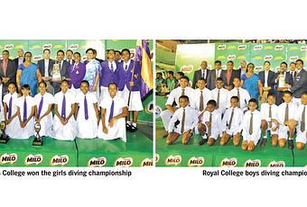 Royal College Colombo and Bishop’s College emerged Overall boys and girls team diving champions at the 47th Milo Sri Lanka schools swimming and diving championships held at the Sugathadasa swimming pool on last Sunday.