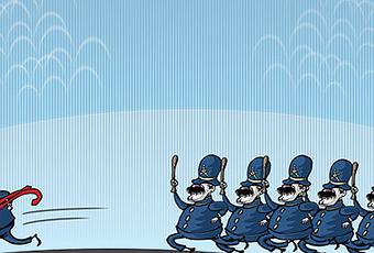 Running Political Cartoon is by Gary Huck at huckkonopackicartoons.com.