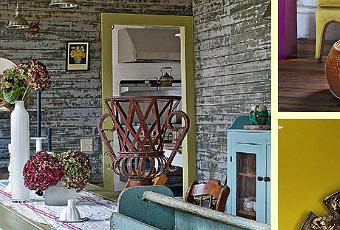 It seems all the homes I absolutely drool over are in New York nowadays. This particular quirky home is in the trendy Brooklyn area. The owner enlisted an interior designer from California to bring in warmth and relaxed glamour. You can see the influence of the West Coast in the bright sunny yellows, in the rustic and romantic combination of textures and materials. It looks and feels like a country home plopped right in the middle of vibrant NYC!