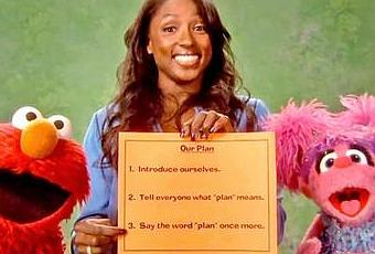 True Blood’s Rutina Wesley visited with some of the muppets recently to “make a plan.” In the video below, we see Rutina and muppets, Elmo, and Abby, introduce themselves and then they explain the meaning of the word plan. Then they repeat the word plan. Sound like a plan? Good.