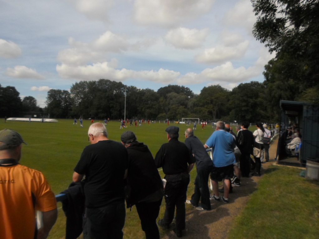 The ground is shared with the cricket club, so all the spectator facilities are down one side. There are three small covered sections of seats and a small three step covered enclosure on the other side of the dugouts. The rest of the ground is open with the far side roped off from the cricket pitch.