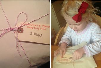 We went for the Personalised navy cotton tee with the 'Thorpe' liberty print with long sleeves as I love Sienna in navy and loved the bright florals of the letter. Obviously, we got the 'S' for Sienna although Sienna calls herself 'Yenna'.. She can says Sienna but to say it right she has to break it down and say it slowly, so opts for 'yenna' if she's in a rush, haha! She is funny! You can see from the pictures it was packaged beautifully with twine and tissue which made it even more exciting. Sienna was excited to see her letter on a top and couldn't wait to put it on.