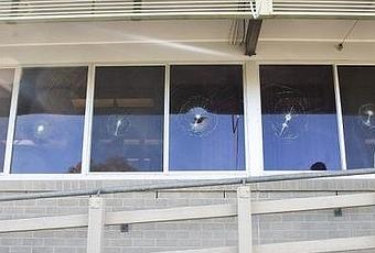 Windows smashed at the Parks and Conservation building. Photo: Elesa Kurtz