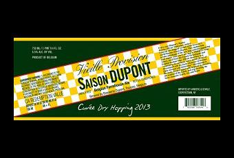Saison Dupont Cuvee Dry Hopping 2013 is slightly modern twist on Brasserie Dupont‘s classic Saison Dupont (you can read my Saison Dupont review here). The dry hopped version of their flagship Saison has been produced for 5 years in Belgium; 2013 marks the first release for the United States. The 2013 version is brewed with the Alsatian Triskel hop which is a cross between the French Strisselspalt and the English Yeoman hop.