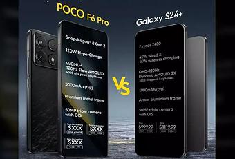 Poco F6 Pro will be officially unveiled in the global market later this week. But ahead of any official announcement, the brand's latest teaser poses a challenge to the South Korean tech giant, Samsung, and its flagship phone. The Xiaomi subsidiary brand recently shared a teaser, comparing their upcoming Poco F6 Pro phone with the Samsung Galaxy S24+ model. Let us now compare the specifications of the upcoming Poco phone and Samsung's latest flagship handset.