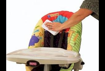 - Wash high chair trays with hot water and soap after every use and dry thoroughly with a single use paper towel.