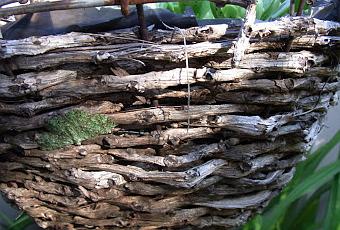 Take this morning as an example. I was out there doing my 'Saturday rounds' of the garden, saying hello to all the inmates, including the ones I tend to neglect, or just presume are doing fine without me, for the other six days of the week. One classic case of such a neglected inmate is the ancient looking hanging basket down one end of the pergola, where a succulent planted there last spring is simply belting along now. But what's this I see on the side of the basket? From a distance it looked like lichen, so I just had to investigate...