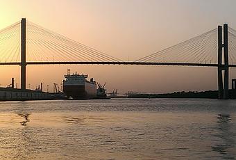 I’ve saved these images from Savannah for joint posting in OYGIF and SWF. This completes my series shot in this delightful city. The first three images below are of the Talmadge Memorial Bridge. The top one was taken with my cell phone and lacks the sharpness of the DSLR pics. Savannah is a busy port and large ships sail up and down the river. This huge vessel was transporting storage containers.