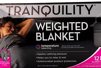 -- The Tranquility™ Antimicrobial Weighted Blanket applies deep calming pressure to help you relax, so you can fall asleep, and wake rested. The antimicrobial product protection helps to keep it clean and fresh.Now $17.88 (was $29.99)