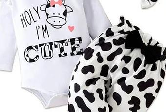 PatPat 3pcs Holy Cow Long Sleeve Romper and Bowknot Trousers Set