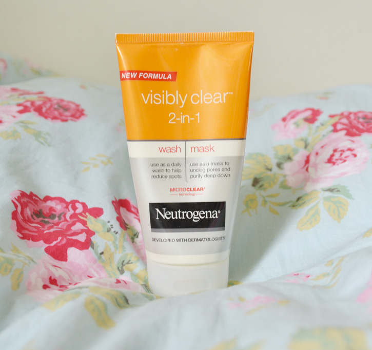 The mask comes in a heavy glass jar, along with a little scooper. The mask itself is a dark gray color. It is very thick, and has some darker gray and black granules in it. I really like the smell, it reminds me of essentials oils. The scoop is also handy, because it keeps everything very hygienic (I hate putting my fingers into pots of products), and it also makes it easy to measure out the amount you need. I’d say I need 1 and a half scoops to cover my face. I like to place a warm Muslim cloth over my face before applying the mask, to very slightly dampen my face and open my pores. Then I apply it quite generously, and leave it for 20 minutes or until it’s dry depending on how much of a rush I’m in. There is a strong tingling sensation when first applied, but its not unpleasant and it wears off quite quickly. I try to let the mask dry fully if possible, because it is an expensive product and I like to feel like I’ve used it properly.Then I simply rinse off. You can use a muslin cloth to take it off if you like, but I prefer to just use water.Neutrogena Visibly Clear 2-in-1 Wash and Mask