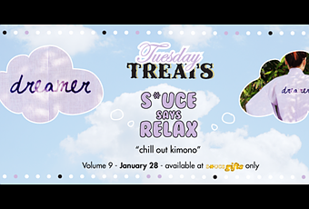 Treat yourself this Tuesday Treats with this incredibly super duper soft 100% organic cotton customizable chillax Kimono and pick whatever text you like to be embroidered on the back of your saucy loungewear.