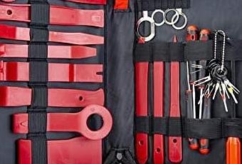 -- It works great for removing and installing automotive, marine, furniture, or aircraft trim, including door panels, moldings, window trim, clips, fasteners, emblems, panels, radios, etc. Comes with Storage Bag.