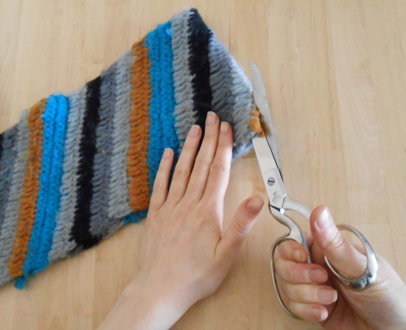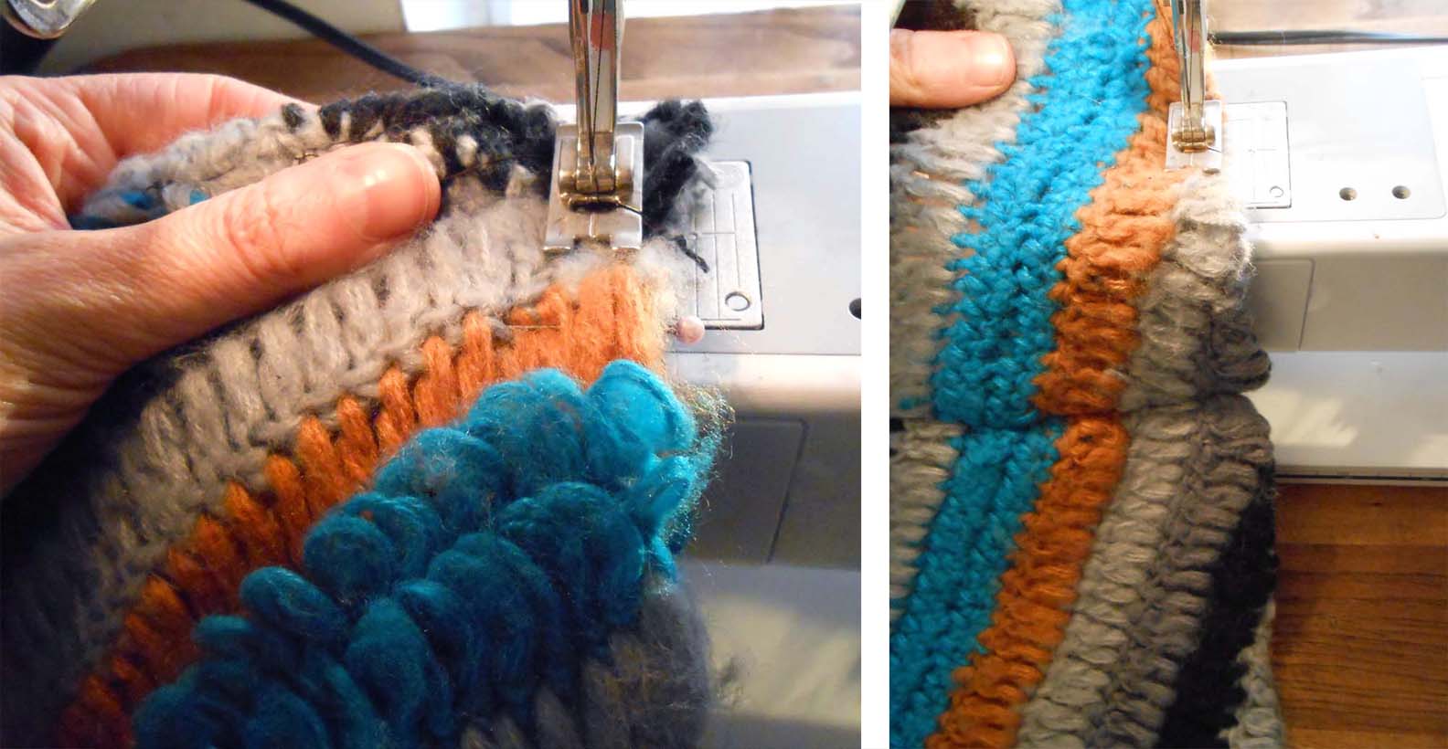 Step 9: Finish by running a 3" row of stitches along each side, from the bottom edge going up.