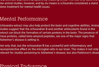 The presence of physical and/or emotional stressors are also risk factors in the onset of depressive symptoms (x). Schisandra, through its adaptogenic actions, can help alleviate depressive symptoms by reducing stress. This was only observed in a few animal studies, however, and by no means is schisandra considered a stand alone treatment for mental health issues (x, x).