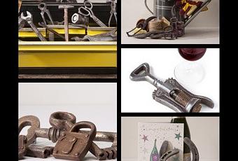 The chocolate masterpieces come from Shokolat UK. Providers of a fun innovative range of novelty chocolate products. Their collection contains over 50 chocolate tools and kitchen items all of which are very authentic looking. The items include bottle openers, paintbrush, keys, hammer, grater, padlocks, scissors and much more.