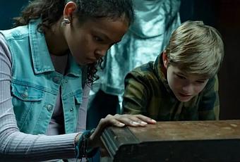 The rocking chair in the resort won't stop moving. Zoey (Madeleine McGraw) and Wyatt (Landon Gordon), keep your eye on it. "We think it's someone else," Zoey tells Griffin.