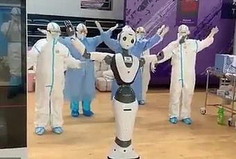 In Wuhan, where the outbreak started, a robot spraying disinfectant moves through a residential area of the city.