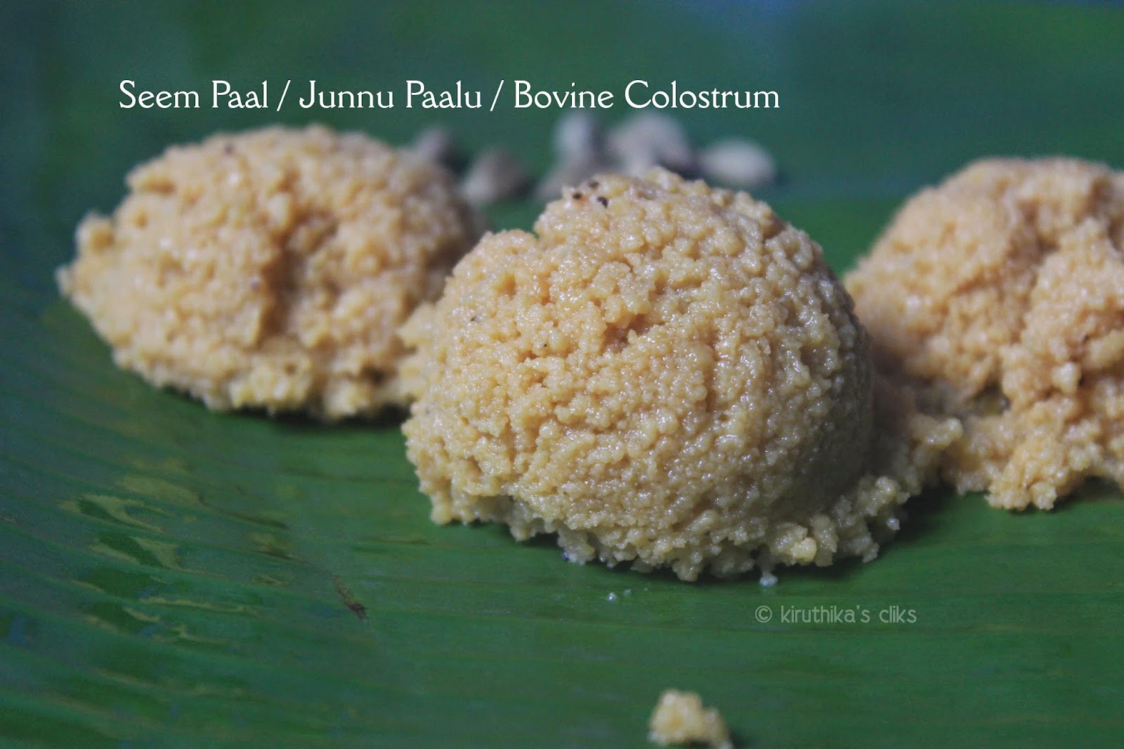 5 cups Cow's Colostrum Milk/ Seem Paal/ Junnu Paal1 cup Jaggery / Palm Jaggery (Crushed)
