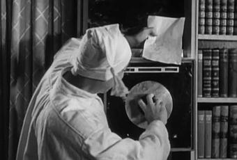 Groucho is in the foreground and Harpo is the mirror image. He gives the game away at c. 3:41 when he has the wrong hat behind him – it’s his standard “Harpo” hat. Chico joins them in a three-way question.