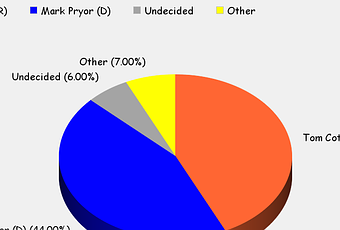 Republicans thought they would have a pretty easy time taking the senate seat away from the Democrats in Arkansas. After all, Arkansas is a pretty red state. But the latest Rasmussen Poll (taken on August 25th and 26th of 750 likely Arkansas voters, with a margin of error of 4 points) shows this race has turned into a real dogfight. The race is currently a dead heat -- with 44% supporting Pryor (D) and 43% supporting Cotton (R). The Republicans could still win this seat, but I'm starting to think Pryor may actually hold on to it for the Democrats.