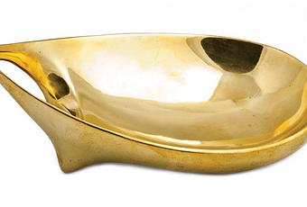 Designed by Carl Auböck of the famed metal workshop, Werkstätte Auböck, this dynamic piece adds not only a touch of gold but a bit of visual interest as well.