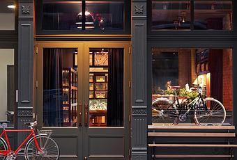 Shinola's new store in Tribeca is located at 177 Franklin Street. The Rockwell Group-designed space includes a cafe run by The Smile in front.