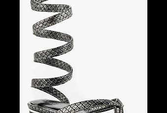 We thought we'd seen and fallen in love with all tall gladiator sandals, and then we saw these dynamic beauties. Ladies with fuller calves, this stunning wraparound-style, gladiator-style sandal will have you jumping for joy. This Carlos by Carlos Kendra Sandal features a snake printed, faux leather upper with coiled strap that wraps around the leg adjusting fit. With a wrap shaft height of 11 1/2", a classic thong sandal silhouette, and a very comfortable 1/2" heel, you will definitely feel like the goddess you are. Grab them in silver (shown above) or gold for only $89.99 at heels.com.
