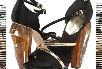 I've spoken before about how a I can fall in love with a shoe just because of it's heel and here is a great example of that. As you can see the upper on the DSquared2 S12C318001 Sandals are very much a simple classic silhouette, although it does feature the combination of two-tone leather and fabric and delicate skinny straps. The heels on the other hand are a beautiful sculpted chunky wood-tone. At 5 1/4" with a 1 3/4" island platform, no one will say you're wearing a basic heel but then again if you're a fan of DSquared, then you're known to have dynamic style.