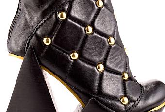 Haute and hot!! You'll be on fire when you step out in this incredible boot which features a black quilted leather upper with gold studs. The Irregular Choice Velocity Ankle Boot is an architectural shoe lovers dream, the 4 3/4" heel with 1 1/2" platform features cut outs and a triangular design. This is more than just statement boot, it's a damn declaration....won't you join me in giving these a standing ovation.