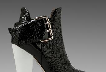 Step into comfort and for the fall season in this Jeffery Campbell Bonita Bootie in black patent and white. Keeping you stylish with the black and white trend, this pretty cool, premium patent leather bootie features a man made German sole, contrast color blocking, a large and chic adjustable buckle closure at the ankle and a bold 5" heel with 1" platform. No one will deny your fashion sensibilities when you're rocking this uber-cool bootie.