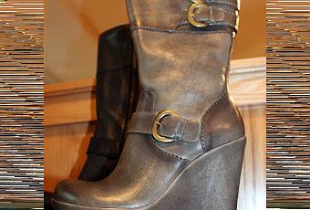 Towering comfort is at your fingers, um...rather...your toes with this cool motorcycle-inspired boot. This tough looking leather boot is the Kork-Ease Wedge Brooke Boot. Historically known for their iconic platform wedge (they ruled the 70's), Kork-Ease pays homage to its history with this mid-calf boot with bold buckle detail, buckled strap accents which add biker flair, and a fabulous 4 1/4" wrapped wedge heel with 1" platform. Take and keep control of the control jungle with every step in this skyhigh wedges.