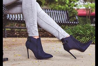 Shoes are our weakness, our Achilles' heel if you will, which is why our shoe blog, Shoeography exists in the first place. Thinking about Achilles' heels, naturally made us think of the Liliana Achillies Ankle Boots. We're definitely weak for these chic ankle boots which feature a rich navy blue faux suede upper (it's also available in black), elastic gores at the sides, decorative gold plate detail at the back, a chic pointed toe, and a 4 1/4" heel. The Achillies is a steal at only $54.99, so fair warning, sizes in both colors are going fast. Get it now on www.heels.com.