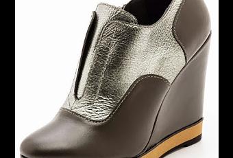 Spring and warmer weather is still far away but that doesn't mean your footwear can't still be chic and affordable. We've shown you several stylish boots that are still very fashionable so why stop - here's another drool-worthy bootie to add to your wardrobe this season. Say hello to the Nanette Lepore Two Timer Wedge Bootie, an Oxford-inspired wedge bootie that boasts a futuristic feel with metallic leather accented vamp, calfskin leather upper, faux front closure, contrast color foam rubber sole, exposed side zipper closure and a 4" wedge heel with 3/4" platform. Luckily for you, this baby is currently on sale on Shopbop for $189.00. Happy shopping.