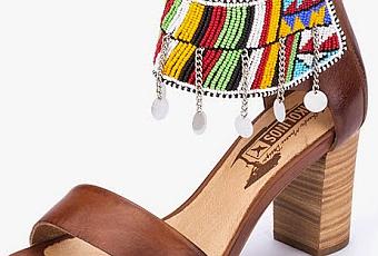 We're crazy over embellished women's shoes this season, and we're not the only ones. Just like there are statement jewelry and handbags, there are statement shoes. Sometimes, the statement of women's shoes is made with a color, print, and even shape but today's Shoe of the Day is a heeled sandal that makes a statement with its stunning embellishments and its background. The Maasai women in the African Savannah hand-stitches the leather of these women's heels for Pikolinos, by doing so, they are helping to improve the quality of life of their tribe, and secure a brighter future for their families. There is a story behind every shoe in the Pikolinos Maasai Collection, with each style telling the story of a Maasai woman.